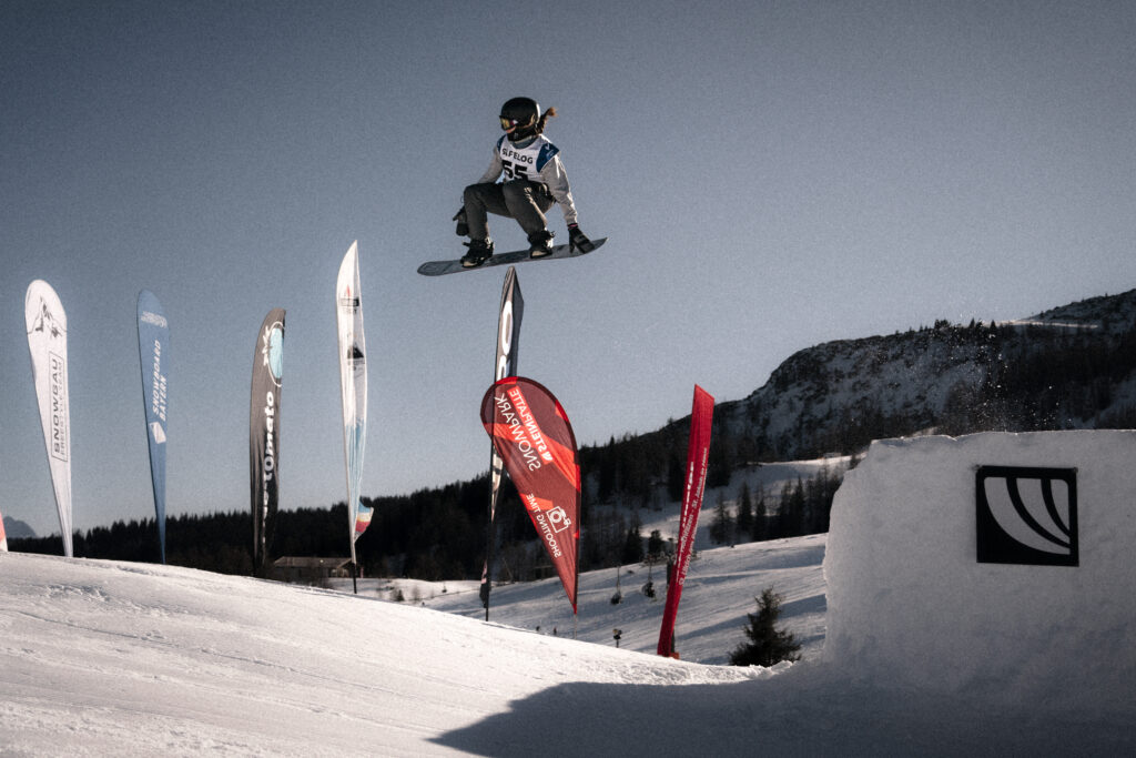 Der zweite Tag brachte ein weiteres spektakuläres Event: Die Bayerische Meisterschaft im Snowboard Slopestyle. Der Snowpark an der Steinplatte verwandelte sich in eine wahre Freestyle-Bühne, auf der die Teilnehmer ihre kreativsten und technisch anspruchsvollsten Lines zeigten.