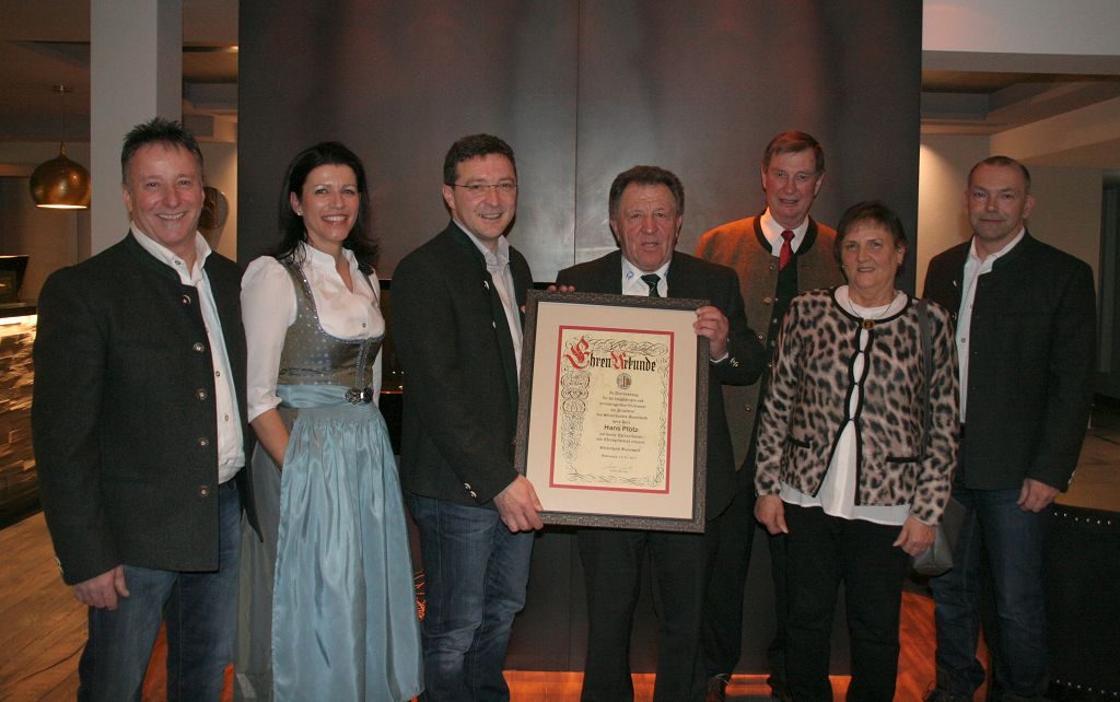 Hans Plötz wurde am Samstagabend die Auszeichnung zum Ehrenpräsidenten des Skiverbandes Bayerwald überreicht.