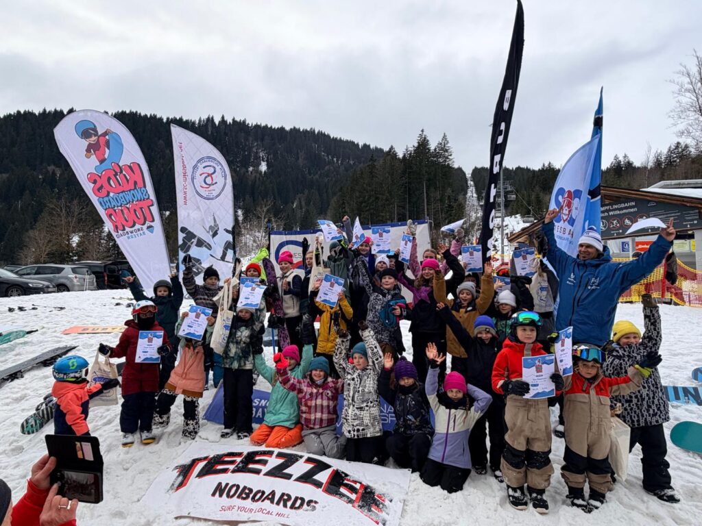 Fast 30 Snowboard-Kids im Alter von 4 bis 13 Jahren konnten bei der Kids Snowboard Tour am Spitzing ihre Skills in Kleingruppen gemeinsam mit den SC’M Coaches verbessern.