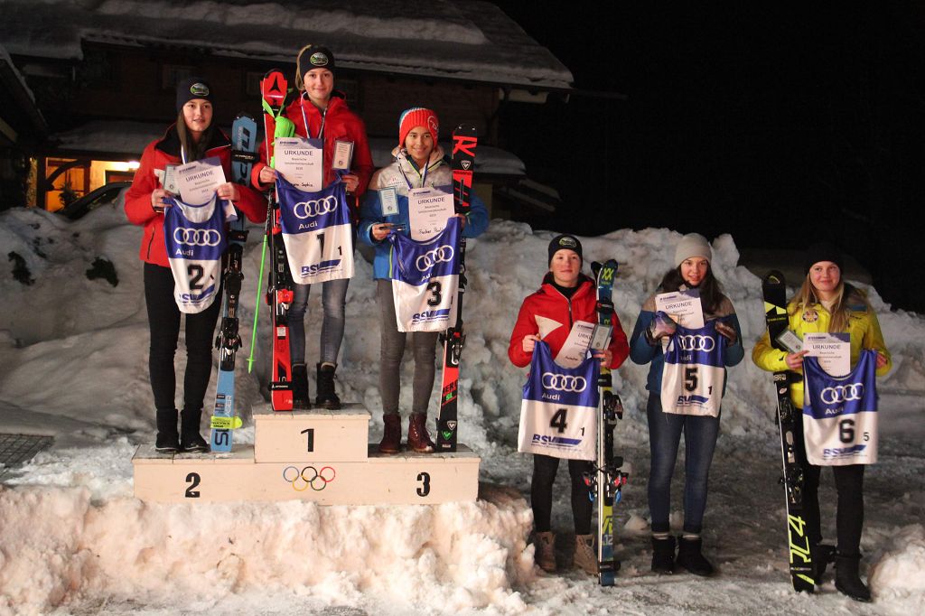 In Rahmen einer eindrucksvollen Siegerehrung am Samstagabend wurden die Sieger und Platzierten mit schönen Pokalen, Medaillen und Sachpreisen der Firmen Marker Dabello Völkl und Ziener geehrt. Dank der großartigen Unterstützung von Paul Foto beschenkte der Bayerische Skiverband die jungen Athleten zudem mit einem persönlichen Rennfoto auf den Urkunden. Zum Anschluss der Einzelwettkämpfe wartete noch ein berauschendes Feuerwerk der Veranstalter auf die vielen Anwesenden.