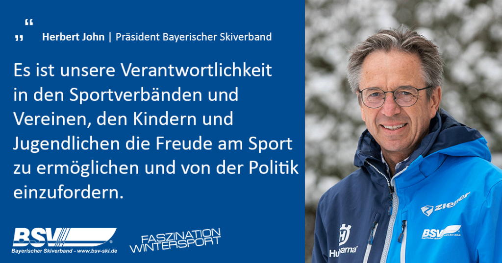 Zusammen hat der organisierte Sport in Bayern mit Aktionen wie dieser seine Stärke zeigen können. Nun gilt es, im engen Schulterschluss zwischen Vereinen und Verbänden wortwörtlich „in Bewegung“ zu kommen. „Die heutige Entscheidung der Bayerischen Staatsregierung hilft unseren elf regionalen Skiverbänden und allen 1.200 Mitgliedsvereinen, dass die Sportangebote für Kinder und Jugendliche einen wichtigen Teil zur Bewältigung der Pandemie leisten können“, freut sich BSV Präsident Herbert John über den Ausgang der Kabinettssitzung.
